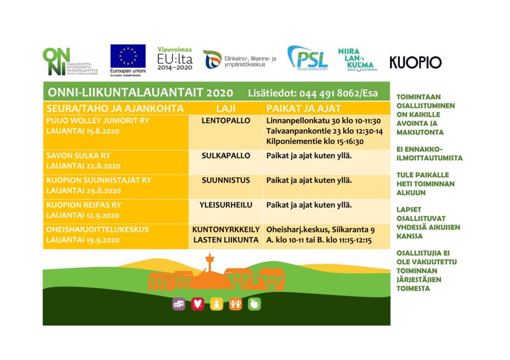 ONNI-liikuntalauantait 2020 / 15.8. - 19.9.