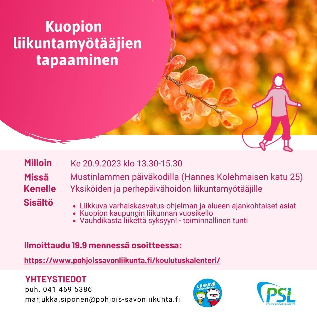 Tervetuloa kaikki Kuopion kaupungin varhaiskasvatuksen liikuntamyötääjät syksyn verkostotapaamiseen!