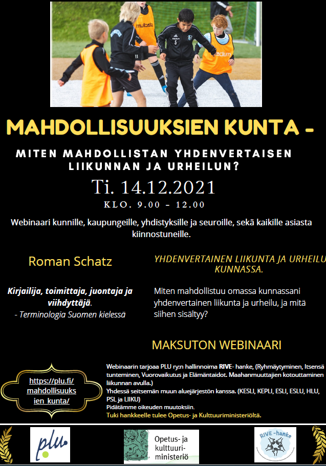 -Webinaari kunnille, kaupungeille, yhdistyksille ja seuroille, sekä kaikille asiasta kiinnostuneille.