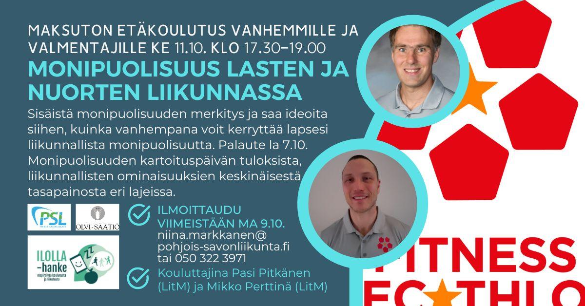 Ilmoittaudu niina.markkanen@pohjois-savonliikunta.fi / 050 322 3971.