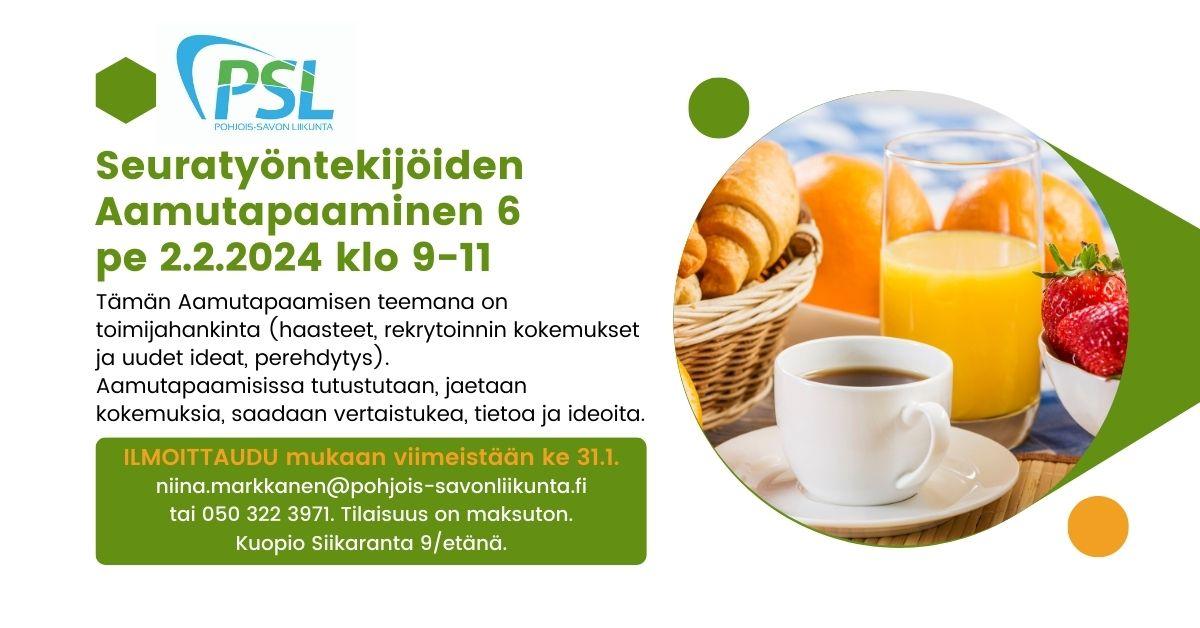 Tervetuloa mukaan maksuttomaan Seuratyöntekijöiden Aamutapaamiseen. Voit osallistua tulemalla paikan päälle tai etänä Teamin kautta. Aamutapaamisen teemana toimijahankinta. Esite alla ja ilmoittautumaan pääset tästä.